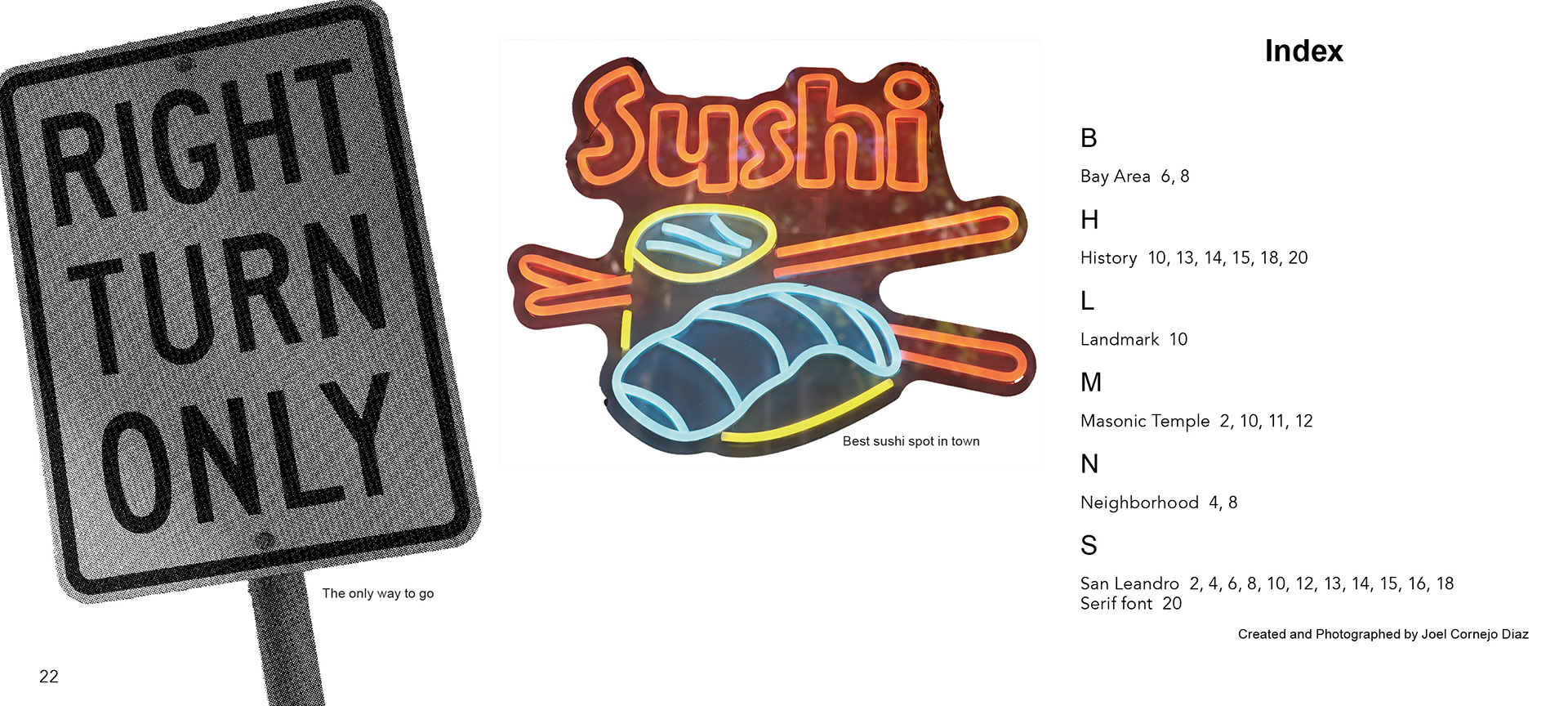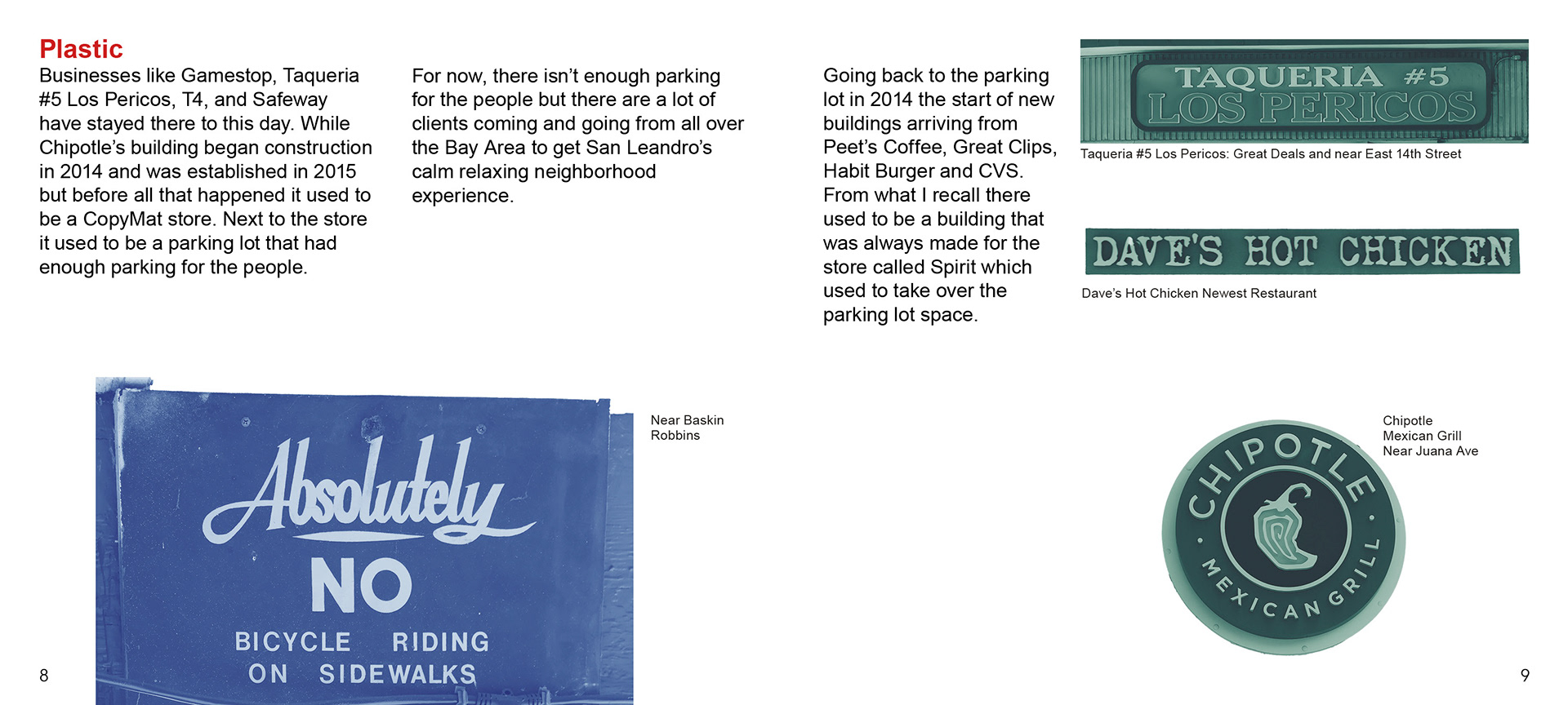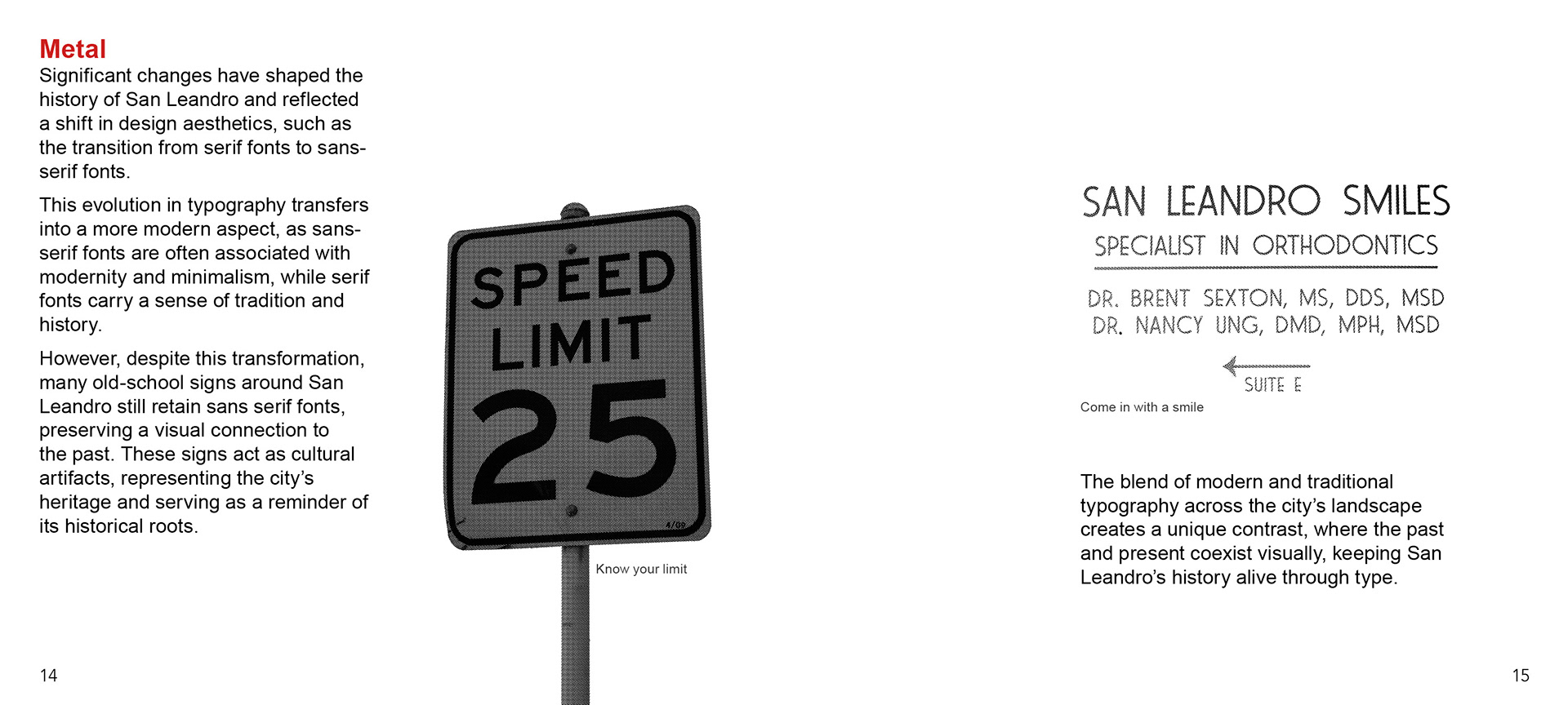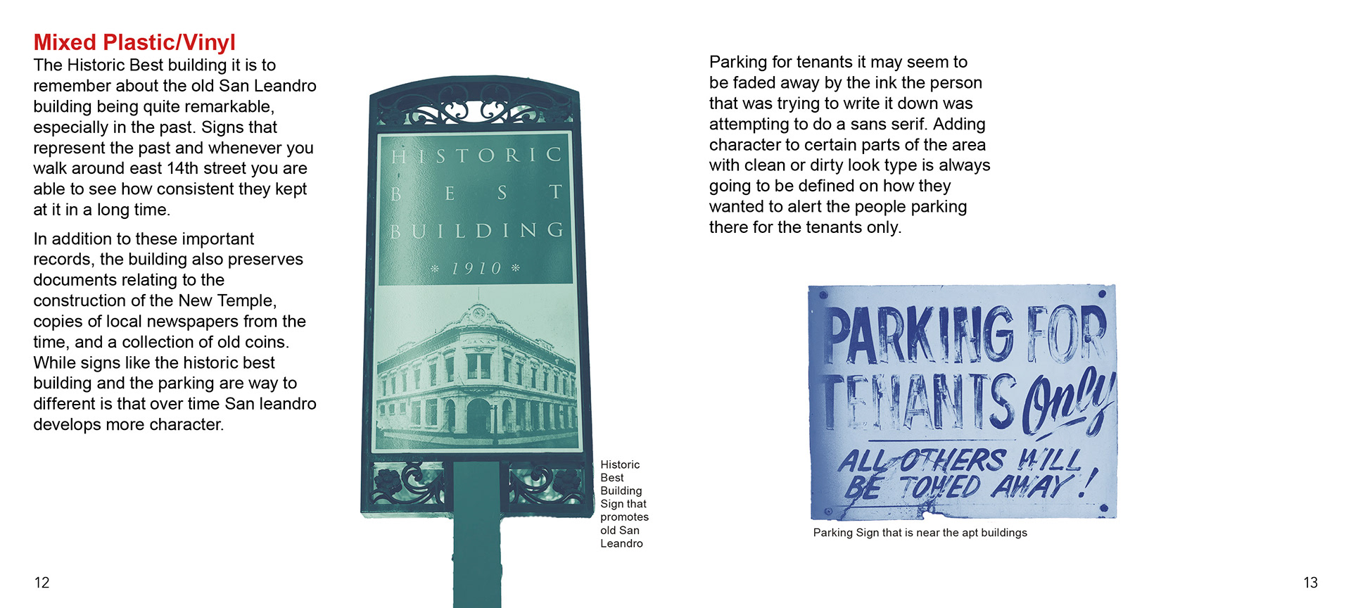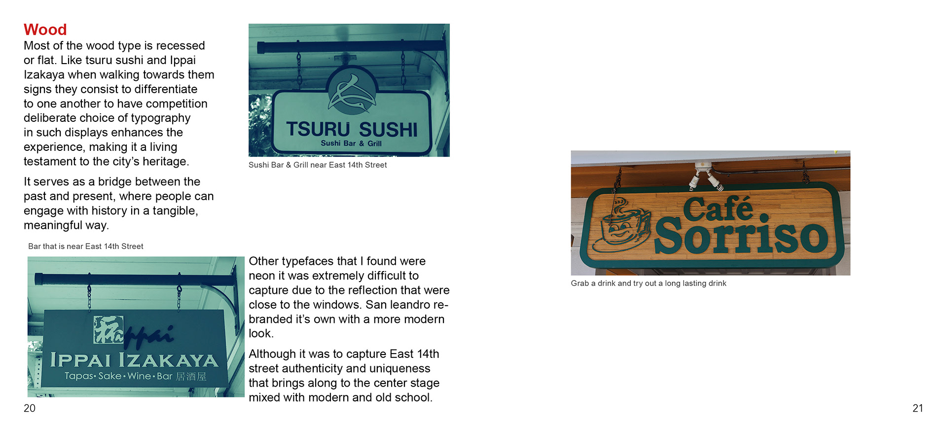 Vernacular Type Booklet based in San Leandro popular main street. Goal is to only use and find typography signs that are designated streets across from each other.